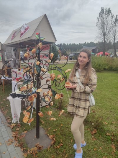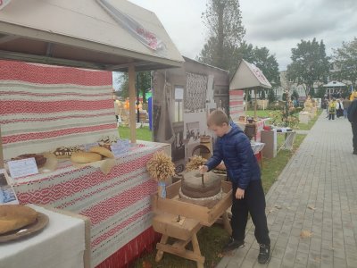 В минувшую субботу мы приняли участие в районных Дожинках в аг. Октябрь в качестве Музея хлеба. В экспозиции были представлены предметы из фондов нашего музея, рассказывающие об истории рождения хлеба на территории Беларуси. А ароматные экспонаты передали меценаты из сельских и городских учреждений культуры и образования. Караваи "Гаспадар", "Памінальны", "Прывітальны", "Вясельны", "Навасельны", хлеб "Першы", "Дахрысціянскі", Пасхальный "Артос", птички " Буськи", специально привезенный с Любанщины уникальный "Жораўскі хлеб", рецепт которого внесен в гос.список ИКН, а также символ жизни и надежды - "Блокадный хлеб" можно было увидеть на нашей локации. И конечно же немного интерактива - гости с удовольствием мололи пшеничную муку с помощью настоящих жерновов и угощались булочками с "хлебного дерева"